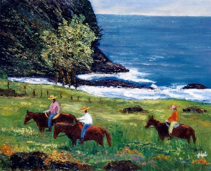 Paniolo Country is just one of many paintings and unique pieces you might enjoy at Art by Jael. Her inspiration comes from the scenery of Hawaii and the imagery of her own imagination. Perhaps you will find yourself a treasure.