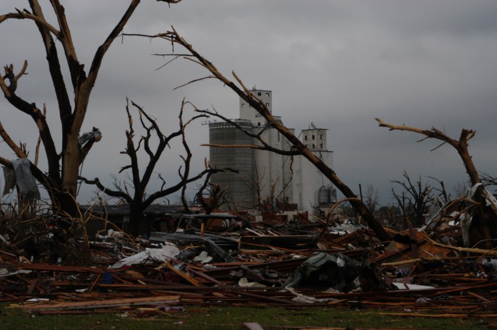 Very early on the morning on May 5, 2007 I got a call from NBC News to hurry from Denver to Greensburg, Kansas. There had been a huge tornado and the town was devastated. Go! Go! When I pulled into the town six hours later I was stunned to see wreckage so complete that even the bark had been pulled off the trees. These skeleton sentinals stood over a community of people who were lost and dazed. The EF-5 tornado had 205 mile per hour sustained winds. Almost the entire town was in ruins. It was apocalyptic.